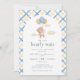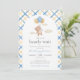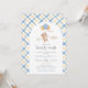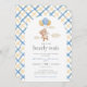 Nós podemos esperar Chá de fraldas apresenta uma aquarela fofa de um ursinho flutuante e balões, com um padrão de gingham amarelo e azul. Personalize-o com os detalhes do evento. Um belo convite, perfeito para o seu evento!