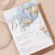 Celebre seu belo chá de fraldas de estilo com estes convites para o chá de bebê com tema ursos. Este convite para o chá de fraldas apresenta um adorável urso bebê segurando um monte de balões em uma mistura de blues e dourados, com um fundo de nuvem azul e um arco branco, terminado com o texto clássico da letra da caligrafia que diz "Nós podemos esperar mais cedo". Perfeito para um chá de fraldas para um garoto com temas azuis.