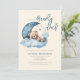 Podemos esperar muito tempo pelo convite do Chá de fraldas com ursinho bonitinho dormindo na nuvem azul inchada e na lua e estrelas da meia-crescença. É um convite para chás de fraldas. Celebre a chegada do seu pequeno com o encantador convite para Chás de fraldas "Podemos Esperar"! Apresentando um adorável design de um ursinho de pelúcia fofinho dormindo pacificamente em uma nuvem azul fluffy, uma lua crescente brilhando, e estrelas cintilantes, este convite captura a doce antecipação de seu pacote de alegria. Os tons pastéis suaves e os detalhes caprichosos o tornam perfeito para uma celebração neutra em termos de gênero. Este convite é perfeito para os pais a serem que querem um tema doce e sonhador para o seu chá de fraldas. É também uma escolha criteriosa para amigos ou familiares planejando uma celebração para um ente querido. Azul e amarelos gentis criam um tema calmo e neutro em relação ao gênero.