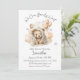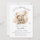 Prepare-se para celebrar a chegada de um novo pacote de alegria com este charmoso convite para chás de fraldas! Ele apresenta um ursinho bebê irresistível e fofinho amontoado num cobertor confortável, junto com a frase popular "Nós podemos esperar mais cedo" mostrada brincalhão ao lado da imagem adorável, não há dúvida de que este convite irá dar o tom perfeito para o seu próximo evento.