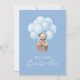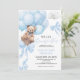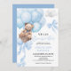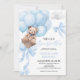 Convite de Chá de fraldas azul com ursinho de bebê fofo. Podemos Esperar pelo tema do chá de fraldas do urso.
