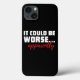 Pode ser pior.. aparentemente. Uma capas de iphone sarcástica divertida com uma design ousada e moderna. Ele é um presente excelente para cínicos e pessimistas. Estes são tempos estranhos em que vivemos. É melhor não se preocupar em como pode ficar mais estranho!