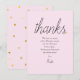 Poema de agradecimento para menina bebê com script chic. Concebido para combinar com a nossa coleção de chuveiro de bebê menina coração dourado com script chic, sprinkle ou casal. Apresenta um script chic com um coração de amor dourado em um fundo rosa suave. O verso tem corações de amor dourados espalhados em um fundo correspondente. Uma maneira perfeita de dizer obrigado!