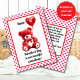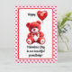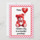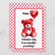 Celebre o Dia dos Namorados do seu neto com este cartão adorável com um ursinho vermelho segurando um balão em forma de coração. O design da frente inclui uma mensagem doce, enquanto a parte traseira exibe um poema emocionante cercado por um padrão de pequenos corações vermelhos. Personalize com seus nomes para torná-lo ainda mais especial. Perfeito para avós que desejam compartilhar amor e alegria nesta ocasião especial. O ano também pode ser alterado para 2º, 3º, etc.