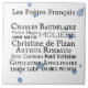 Les Poètes Français é uma composição que usa tipografia, de famosos nomes de poetas franceses, incluindo alguns dos mais famosos poetas de todos os tempos. Texto preto sobre fundo branco, acentuado com folhas azuis. Uma adição literária à sua coleção de azulejos.