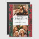 Bela, corajosa e colorida botânica de Natal com poinsetos vermelhos profundos floresce sobre fundo verde de caçador escuro. Possui campos de texto editáveis e modelo de duas fotos.