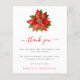 Casamento do Poinsettia Photo Xmas Obrigado Um alternativo de 4,5" x 5,6" de preço inferior. Disponível em um STOCK DE CARTÃO SEMI GLOSS 110 lb, que é a opção padrão (mais espesso para convites), OU um STOCK DE PAPEL THINNER SATIN FINISH 80 lb (ideal para gabinetes). Os envelopes são um extra opcional e são ligeiramente maiores que o tamanho da placa. Personalize facilmente o texto para seus próprios detalhes. No verso, troque a sua foto favorita do dia do seu casamento de orientação para retratos é um guardião para os seus convidados.