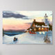 De uma pintura original acrílica de Brenda Thour, de Sherwood Lighthouse em Wisconsin, durante um belo pôr do sol em uma neve cobria o dia dos Invernos e duas pessoas se movendo em neve. Copyright de Brenda Thour 2004.