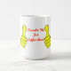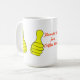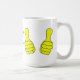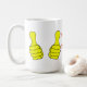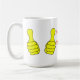 Modelo da caneca de café com ilustração das mãos com polegares acima em lados e 'polegares acima para no texto vermelho customizável da ruptura de café"