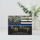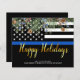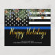 Enviem saudações de Feliz Natal a amigos, família, colegas departamentos de polícia e a sua comunidade com este Cartão de Natal Útil da Polícia de Linha Azul - Bandeira Americana em cores de bandeira policial, preto e azul moderno com folhas e bagas ocas e um roteiro elegante de ouro. Personalize com sua mensagem e seu nome de família ou departamento de polícia. Estes cartões de Natal da polícia são perfeitos para as famílias da polícia e polícias, bem como para os departamentos da polícia. COPYRIGHT © 2020 Judy Burrows, Black Dog Art - Todos Os Direitos Reservados. Polícia de Cartões de Natal da Polícia de Orçamento