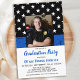 Convites de Formatura da Academia de Polícia Thin Blue Line ou Convites de Aposentadoria da Polícia. Celebre anos de serviço dedicado ou celebre seu novo graduado na academia de polícia e convide amigos e familiares para sua festa de aplicação da lei com este Convite de Aposentadoria da Polícia da bandeira Thin Blue Line e convites de formatura da academia de polícia - design da bandeira americana dos EUA em cores da bandeira da polícia, design desgastado. Este convite de aposentadoria de oficial de polícia também é perfeito para convites de formatura da academia de polícia, altere o local na personalização. Veja nossa coleção para presentes de aposentadoria da polícia, presentes de formatura da polícia, brindes e suprimentos. DIREITOS AUTORAIS © 2021 Judy Burrows, Black Dog Art - Todos os Direitos Reservados. Orçamento Convite de Formatura de Polícia Thin Blue Line Photo
