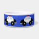 Uma tigela de comida de cão super fofa com um design de carro de polícia fofo e um osso de cão com o nome do seu cão no osso.