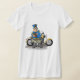 Ninguém quer ser parado e receber um bilhete, mas é exatamente isso que está a acontecer aqui. Este design tem um policial parado na moto escrevendo um bilhete. Ele está vestindo tons escuros. Este policial escrevendo uma design de passagem parece excelente nesta camiseta feminina. Perfeito para si mesmo ou como presente