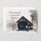Uma bela foto da ponte coberta em Woodstock, VT adorna este cartão festivo de Natal.