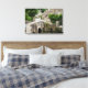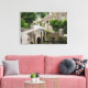 Impressão de tela da ponte sobre o rio Bybrook, na pequena e tênue aldeia do Castelo Combe, com casas construídas a partir de pedra colorida em Cotswolds, Inglaterra, Reino Unido.