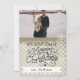 Texto preto que diz "Desejamos a Você um Feliz Natal" na frente e "e um Feliz ano novo!" atrás com pontos de argila sobre fundo branco, flocos de neve brancos e cervos de silhueta, e áreas que você pode adicionar seu nome de família e foto em um cartão de cartões de natal de Natal que você certamente quer enviar para a família e amigos!