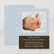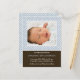"Pontos Polka" anúncio de nascimento em foto azul e marrom. Personalize este modelo de cartão postal de foto fofo e elegante com a foto e detalhes da sua bebê para um anúncio de nascimento único.