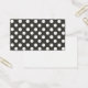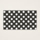 Bolinhas brancas em cartões de visitas pretas de fundo.