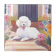 Design de Azulejo Cerâmico com Flores Aquarela de Cachorro Pet Poodle Branco