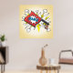 Bang, vai a arma. Faça um grande impacto no seu muro com a ilustração da poster com quadrinhos de pop artística inspirada por uma arma falsa disparando a bandeira do estrondo. Ilustração desenhada à mão por McBooboo. Precisa de cores diferentes, apenas me envie um e-mail!