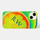 Com uma fatia de citros psicodélicos em laranja claro, amarelo, azul e verde, esta capa de telefone tropical multicolorido tem uma sensação de arte retrorada que é divertida e colorida. Personalize-o com Iniciais. Esta imagem é uma fotografia original de JLW_PHOTOGRAPHY