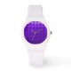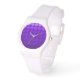 Pontos de Pop do método em tons de círculo gradiente de lilás a roxo profundo, em um relógio desportivo branco.