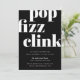 Convites de festas modernos e minimalistas de Ano Novo apresentam estilo preto-e-branco-chico com "pop baru clink" em letras retrorreflectoras brancas de tamanho excessivo. Personalize com seus detalhes de celebração da Véspera de ano novo abaixo. Convites invertem-se para um padrão de estrelas coloridas a preto a branco.