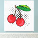 Impressão de arte moderna e engraçada de fruta de cerejas vermelhas brilhantes sobre pontos de meio tom preto. Há texto personalizável abaixo para você adicionar nomes ou uma citação
