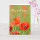 Cartão comemorativo com flores vermelhas vibrantes em um cheio verde de papoilas. Tem uma forte emoção de felicidade, primavera e verão. Pode ser usado para mostrar simpatia e tem o texto: "Muito em breve". A chave é personalizável.