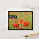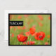 Cartão postal de flores vermelhas vibrantes de papoila num cheio verde de papoila. Tem uma forte emoção de felicidade, primavera e verão. Ela vem com uma borda preta e o texto: "Toscana".
