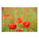 Impressão de fotos de flores vermelhas vibrantes de papoila em um cheio verde de papoila. Tem uma forte emoção de felicidade, primavera e verão.