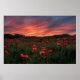 Um pôr do sol incrível mostrando céus laranja/vermelho com um cheio de campo de papoilas pelo fotógrafo Dave Fletcher