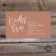 Apresentamos nosso cartão de RSVP de casamento Modern Elegance – a combinação perfeita de sofisticação e simplicidade. Projetado para o casal contemporâneo, este cartão de RSVP apresenta uma escrita limpa e minimalista, e um toque sutil de terracota rústica marrom terroso para confirmar a presença dos seus convidados. O design elegante complementa o tema de casamento rosa empoeirado, adicionando um toque de classe à sua suite de papelaria. Certifique-se de que o seu dia especial seja meticulosamente planejado com o nosso cartão de RSVP elegantemente moderno – um souvenir atemporal para você e seus convidados. Projetado por TeeshaDerrick