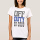 Fora do trabalho e fora do serviço. Relaxe em uma t-shirt quando estiver longe do trabalho. Mostre ao mundo que está fora de serviço. A mensagem da camisa diz: Off-Duty, Por Favor, Saia.