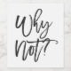 Atraia seus amigos adicionando esta etiqueta engraçada de garrafa de vinho ao seu presente de vinho! Ele apresenta um roteiro de pincel de cinza escura que diz "Por que não?". Perfeito para as raparigas.