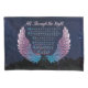 Um lembrete dos cuidados amorosos e sempre atentos de Deus. Acalme-se para a noite, nesta tenda que mostra a canção popular galesa, All Through the Night (c. 1794). As asas de anjo moldam a melodia escrita em anotações estelares com as letras escritas abaixo. "Dormir, meu filho, e a paz comparecerão a noite toda; Anjos Guardiões Deus o emprestará durante toda a noite; Suave as horas sonolentas estão arrepiando, Hill e Vale no sono; Amor sozinho Seu relógio está passando a noite inteira."