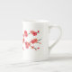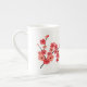 Esta caneca da porcelana de osso é decorada com um ramo das flores de cerejeira vermelhas e corais.