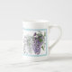 Uma caneca floral da porcelana de osso do prazer dos Glicínia-amantes com os bowers pendulous do roxo, lavanda, e as videiras brancas das glicínias, arranjou a folha, aparada em um azul e em uma lavanda pastel. Certamente cada dona de casa no sul terá que ter pelo menos dois destes para convidados da manhã da surpresa.