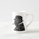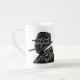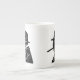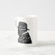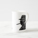 Esta caneca de China de osso caracteriza a silhueta do primeiro ministro britânico legendário Winston Churchill com seu grito famoso aos jovens de sua nação.