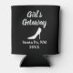 A moça costueta conseguiu o portador de bebidas para o fim de semana. Adicione seu próprio destino e data. Impressão dupla lateral com silhueta calçado de salto alto e estampado e tipografia de script elegante. A diversão pode servir para férias femininas, festa de solteira, meninas noites fora, chá de panela, casamento e muito mais.