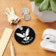 Pomba voadora com ícone de chave simples. Cor de fundo personalizada. Texto personalizado de ambos os lados.