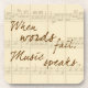 As características deste design bonito o sentimento, "quando as palavras falham, música falam", em um fundo tonificado amêndoa do olhar da partitura.