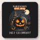 Um castelo absurdo contra o fundo dos ecos e o céu noturno com morcegos. A abóbora negra do Halloween enfatiza bem o tema do feriado.