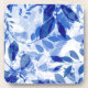 Um padrão abstrato de folhas azuis e brancas aleatórias.