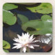 Um lírio d'água florescente sai da água entre as almofadas esperando por um sapo ou libélula residente. Personalizar para uma saudação, piquenique ou reunião de verão.