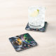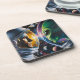 Alienígena e astronauta no espaço fazendo um confronto de olhares. Fundo de estrelas e planetas.