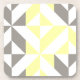 Um padrão geométrico abstrato e moderno em amarelo-frambesa e cinza-prata.