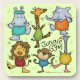 Um bando de animais da selva que vestem leotard está fazendo alguns exercícios nesse giro da selva. Uma bela imagem com o tema da selva de desenho animado. Design original de Christie Black of Creations do Coração.