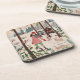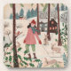 Mulher cor-de-rosa e verde fofa e coelhos para o ano do cenário alpino de neve do coelho na natureza com neve com árvores e casas. Obra original de Caroline Bonne Müller