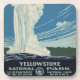 Arte de capa de pôster de viagem ilustrativo vintage ou folheto de viagem no Parque Nacional de Yellowstone com gêiser Old Faithful em erupção. Serviço de Naturalistas de Parque, passeios pela natureza, viagens de campo, programas de fogueira de acampamento e palestras sobre a natureza. Departamento do Interior dos EUA, Serviço Nacional de Parques.